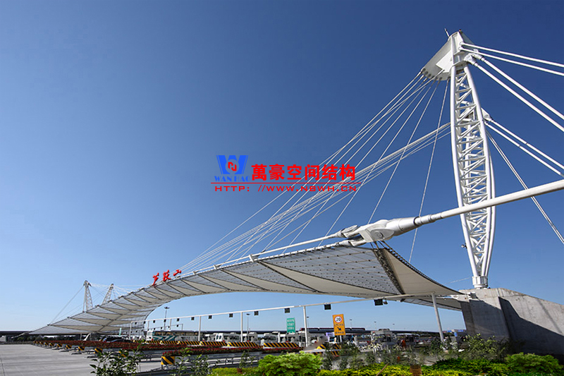 東常蘆荻山收費站膜結構效果圖,該結構跨度大,造型別致,十分吸引人,有興趣做這種類型收費站膜結構的可以聯系我們哦。